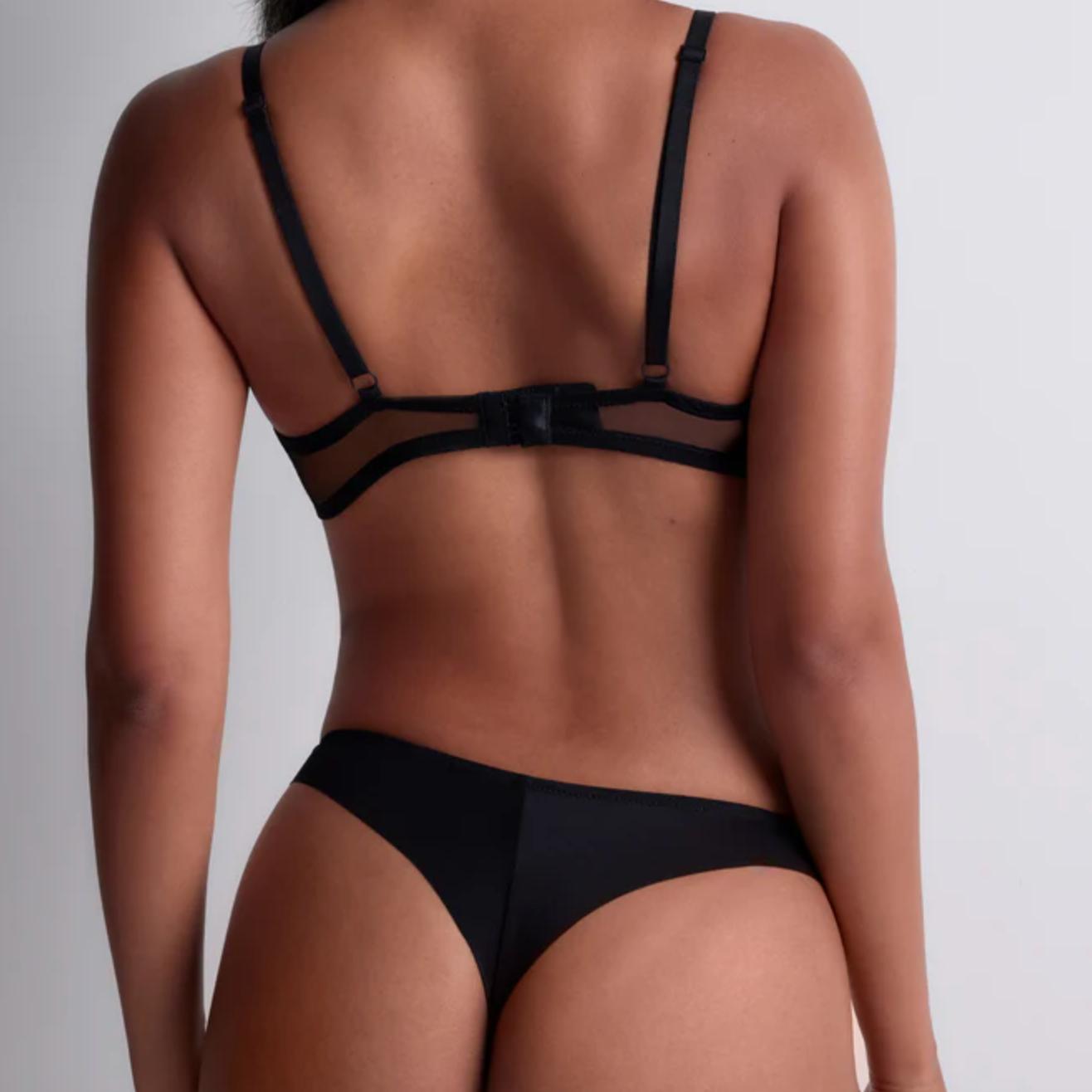 he sexy Sheer Emotion tanga brief features a very seductive see-through tulle inset at the front, accentuated by contemporary, eye-catching embroidery and a gold charm that glistens at the waist. The back is made entirely from soft, comfortable fabric for zero VPL.