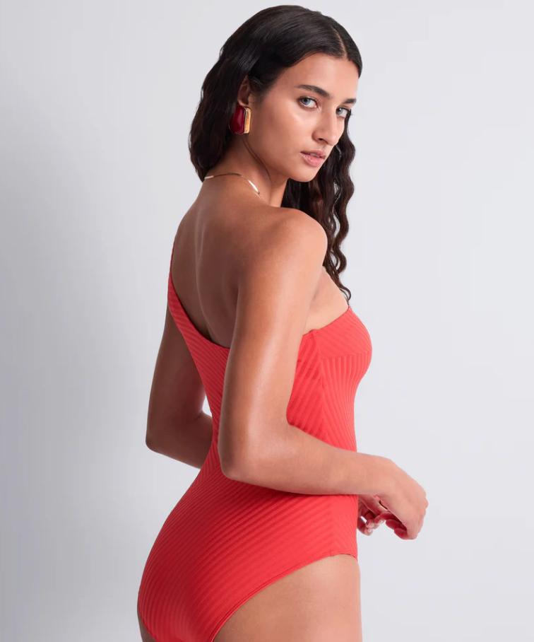 Make a splash in this striking Aubade one-piece that breaks the mold with its bold asymmetrical neckline and eye-catching fabric design. Crafted from premium polyamide and elastane blend, the mesh offers superior stretch and recovery for all-day comfort. The polyester-elastane lining ensures a smooth, supportive fit. Perfect for swimmers who refuse to blend in.
