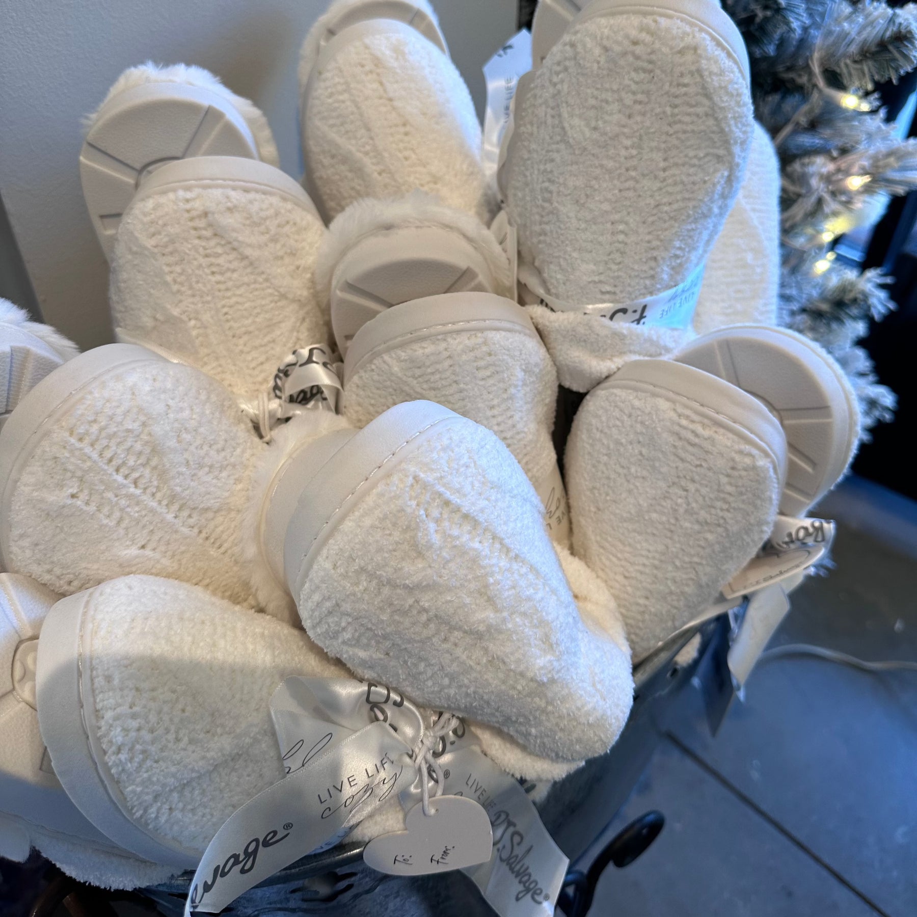 PJ Salvage Cable Crew Slippers RPCLSL in Ivory-Anna Bella Fine Lingerie-Ivory-Small-