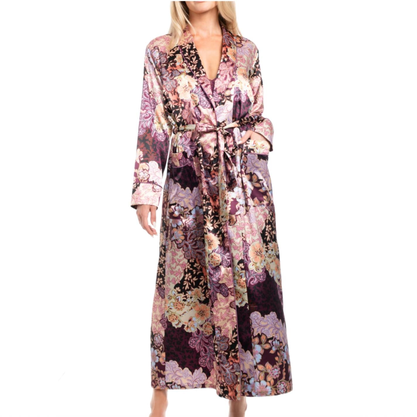 Wrap yourself in cozy elegance with the Jonquil Anna Long Robe. Featuring a stunningly dramatic length and a gorgeous print, this robe is your perfect companion for welcoming the crisp charm of Fall. Its flowing fabric moves beautifully, adding a playful touch to your loungewear as you embrace the season’s warmth and style.