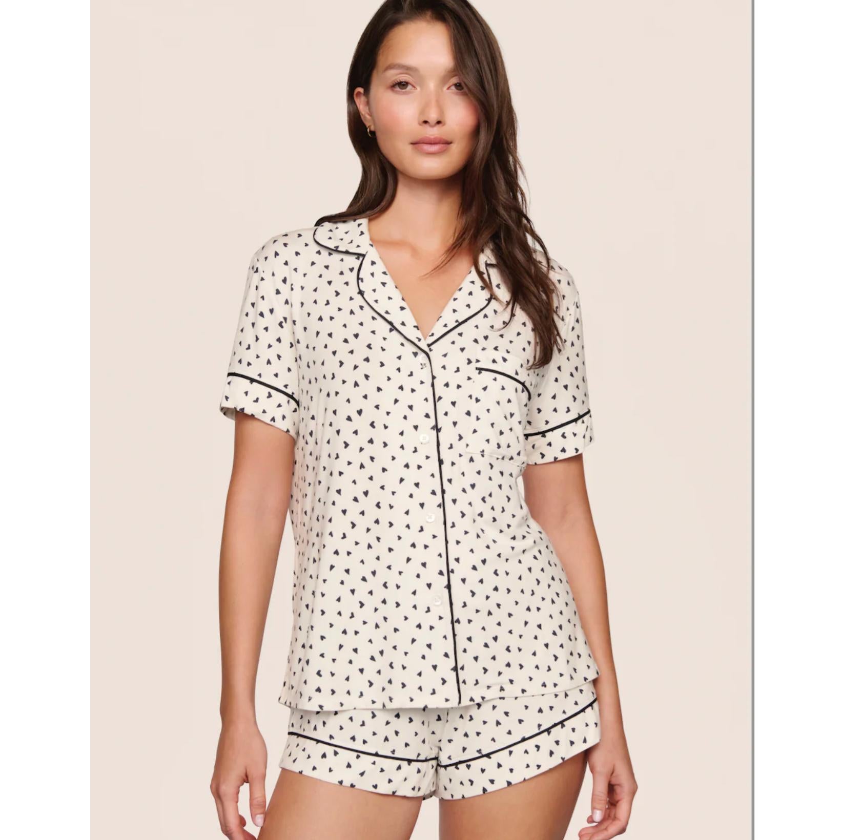 Hello Valentine!! The PJ that started it all. Made from TENCEL™ Modal fibers and a touch of elastane, this buttery soft fabric is verified by OEKO-TEX® Standard 100, meaning it’s dyed with safe and non-toxic dyes. This relaxed set has a roomy shape, extra coverage, and a comfortable fit that you can wear and gift with confidence. The short sleeve top features a loose fit, button front, notch collar, and functional pocket, paired with relaxed shorts for ease and comfort.