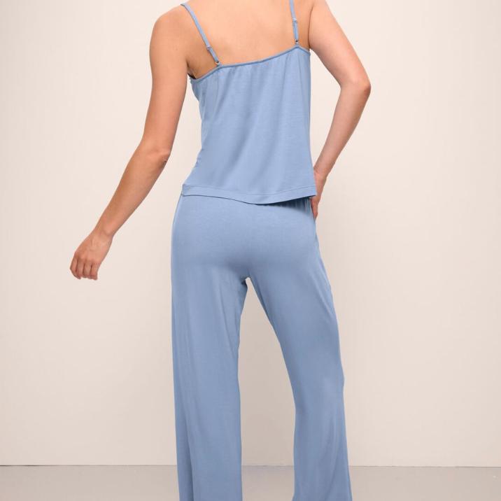 Cool on top, cozy on bottom. The cami features a flattering scoop neck with soft shirring at the center, adjustable straps fit for your comfort. The mid-rise straight leg pant boasts an elastic waistband with a drawstring, side pockets, and a flowy fit that drapes like a dream. This set is made from 95% TENCEL™ Modal and a touch of spandex, verified by OEKO-TEX® Standard 100, which means it was processed without harmful chemicals, Mix and match with your favorite Gisele PJ set or Slouchy pieces.
