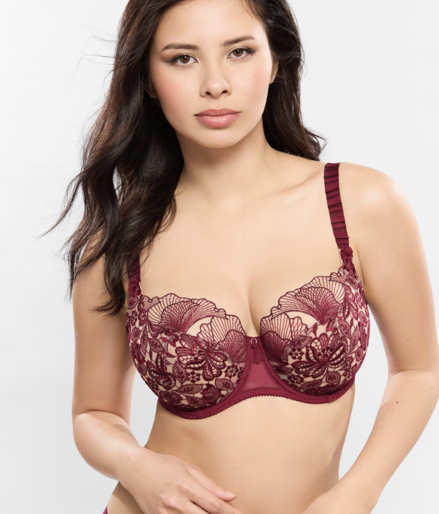 Meet Agathe—the bra that proves luxury doesn't have to be serious. Crafted with European expertise, this underwired stunner wraps you in soft tulle adorned with spring-inspired lace and embroidery that's equal parts romantic and playful. The rich Amarante shade shines through sheer fabrics with just the right amount of peek-a-boo elegance, while meticulous details whisper ultra-feminine charm. Practical glamour has never felt this good or looked this gorgeous.