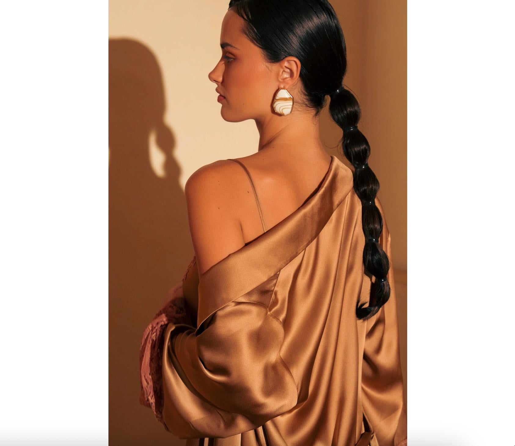 Crafted from luxurious silk and adorned with hand-cut lace, this mid-thigh robe celebrates feminine elegance with understated refinement. The shawl collar frames the neckline while an 8-inch lace trim adds a touch of indulgence. Interior silk ribbon ties and a coordinating silk belt ensure a secure, flattering fit. Part of GINIA's curated collection of modern silk essentials, this piece transitions seamlessly from intimate moments to everyday luxury, working beautifully on its own or layered with other wardrobe staples.
