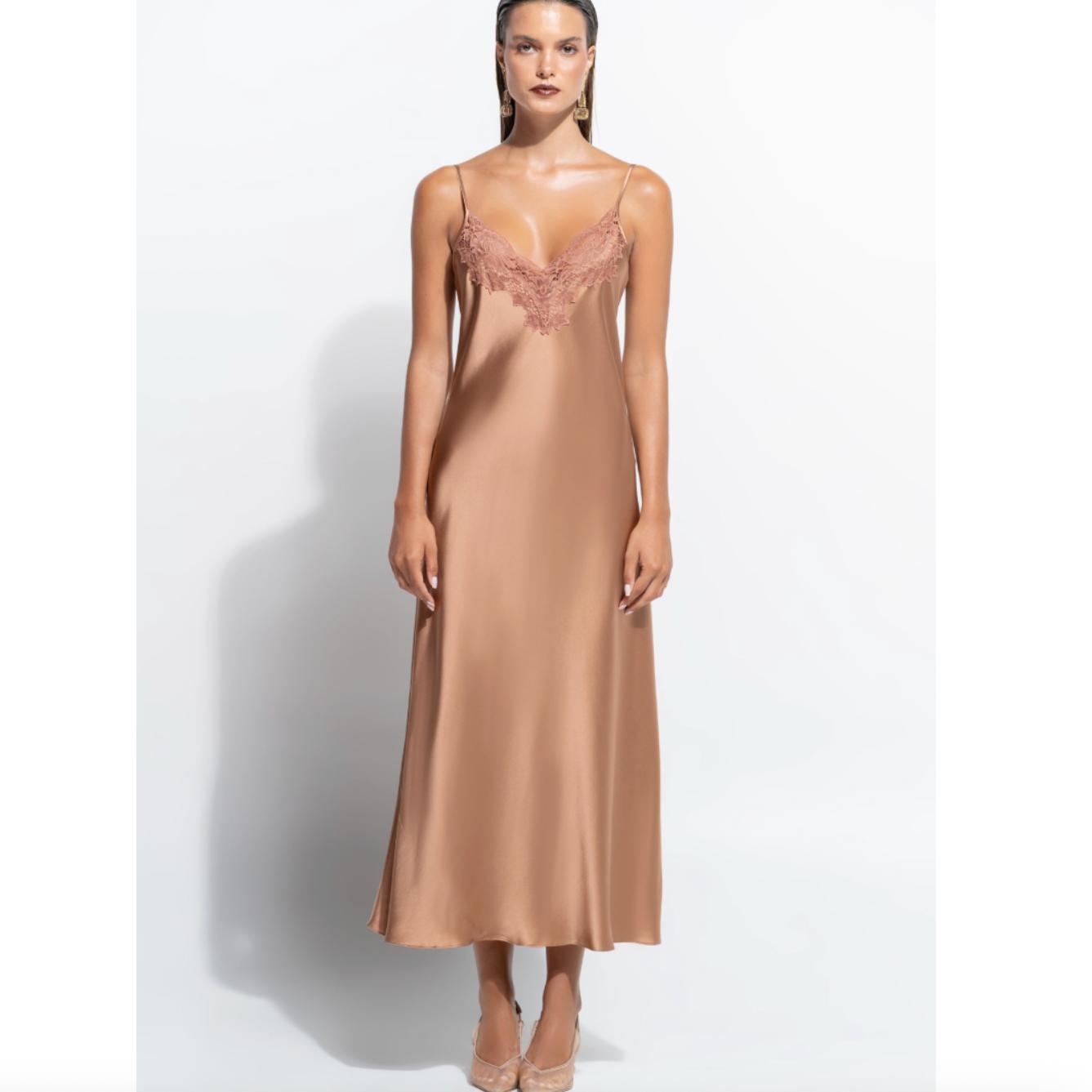 Ginia Silk Lace Slip in Mocha Mousse GBS401