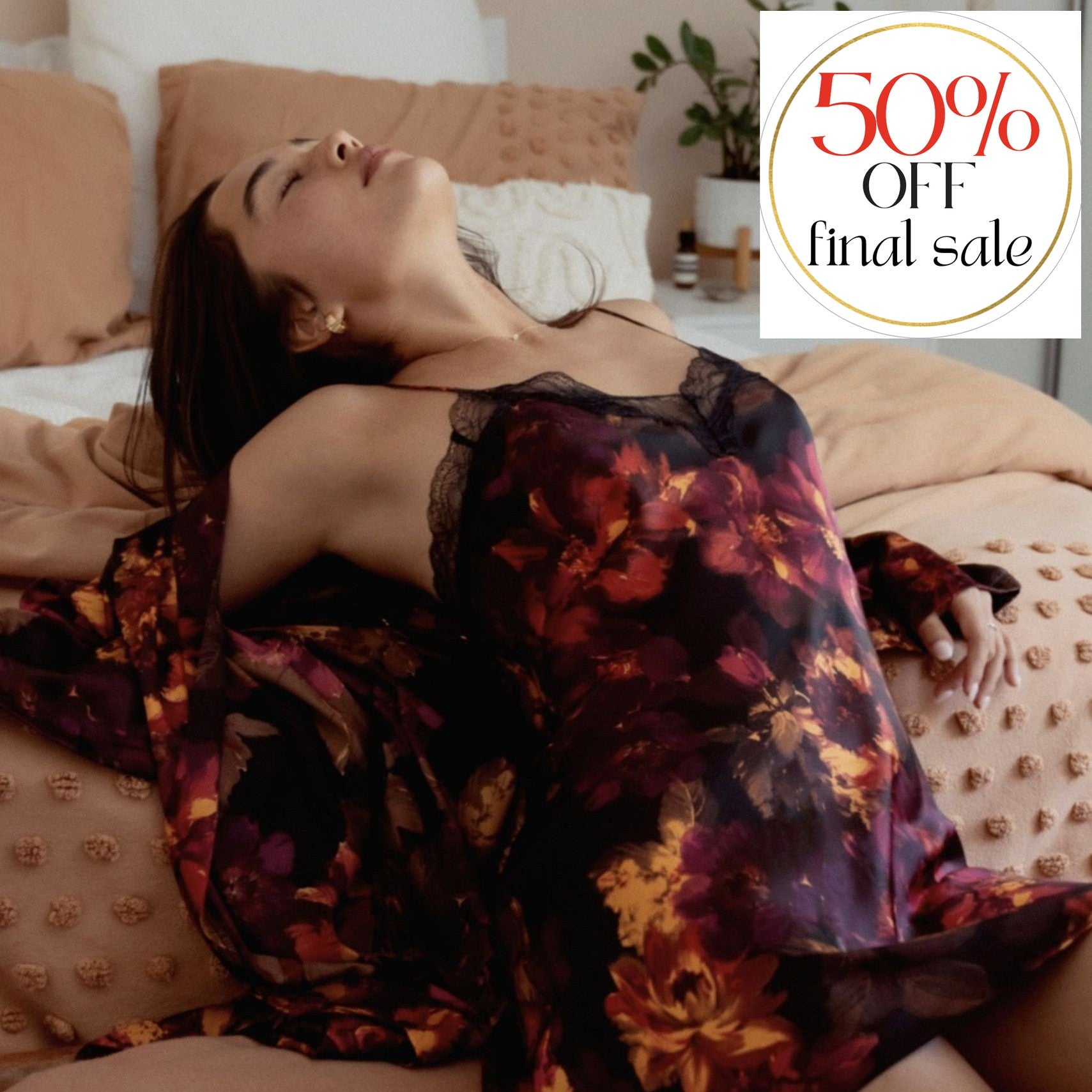 A natte satin chemise featuring an A-line silhouette with beautiful lace at the neckling. The floral print will make you ready for fall! Adjustable straps.