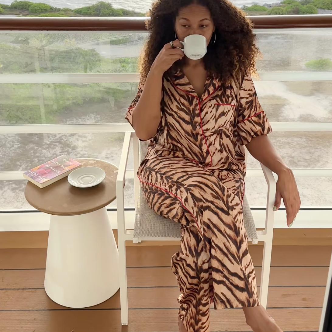 Fierce, fun, and made for lounging — the Indah Bengal Tiger PJ Set brings wild style to your wind-down. With its bold tiger print and buttery-soft fabric, this cozy set is perfect for cat naps, coffee runs, or just showing off your stripes.