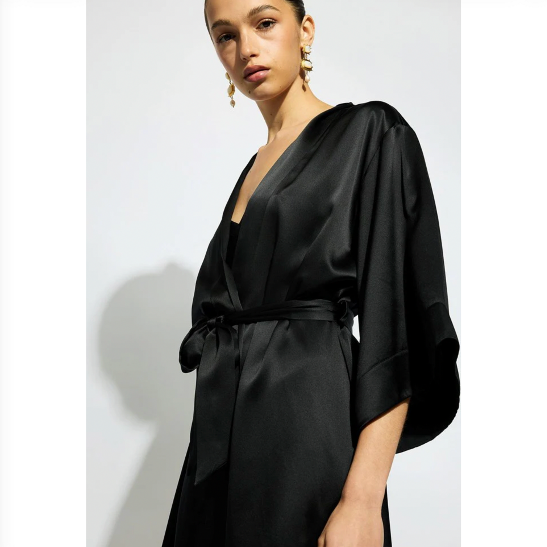 Embodying the refined aesthetic of the Ginia woman, the Silk Wrap Robe reimagines the classic dressing gown with contemporary elegance. Crafted from luxurious 100% silk, this mini-length wrap gracefully drapes to flatter the silhouette,