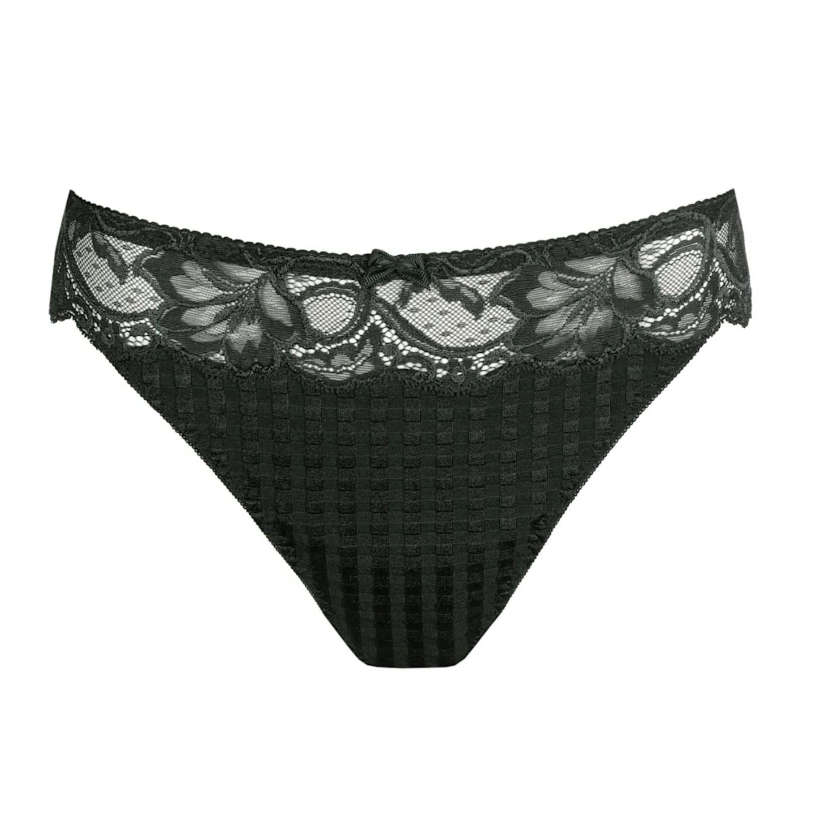 The Prima Donna Madison Thong in Deep Forest brings together an iconic fit and fashion-forward style that evolves with every season. Designed to hug your curves perfectly, this sexy thong creates a sleek, streamlined silhouette that stays invisible under any outfit—whether it’s a fitted dress or your favorite jeans. The rich deep green color adds a playful and unexpected touch, warmer and more inviting against the skin than traditional black. Crafted for both comfort and allure, this thong lets you express your confident, fun-loving personality while feeling effortlessly chic all day long. Embrace the season with a hint of forest enchantment in your lingerie collection.