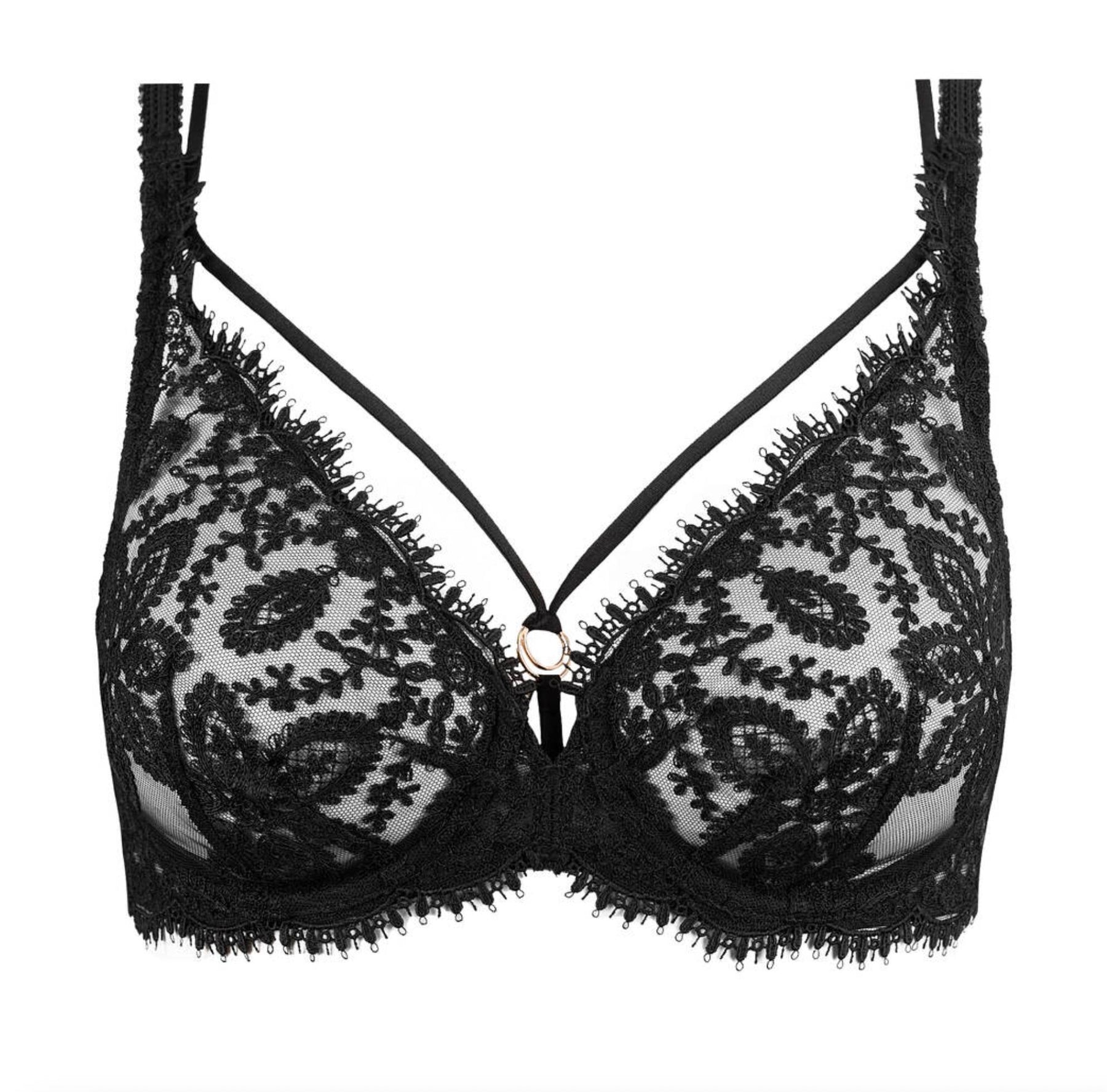 Simone Perele Précieuse Plunge Bra 1G3309-Bras-Simone Perele-Black-32-E-Anna Bella Fine Lingerie, Reveal Your Most Gorgeous Self!