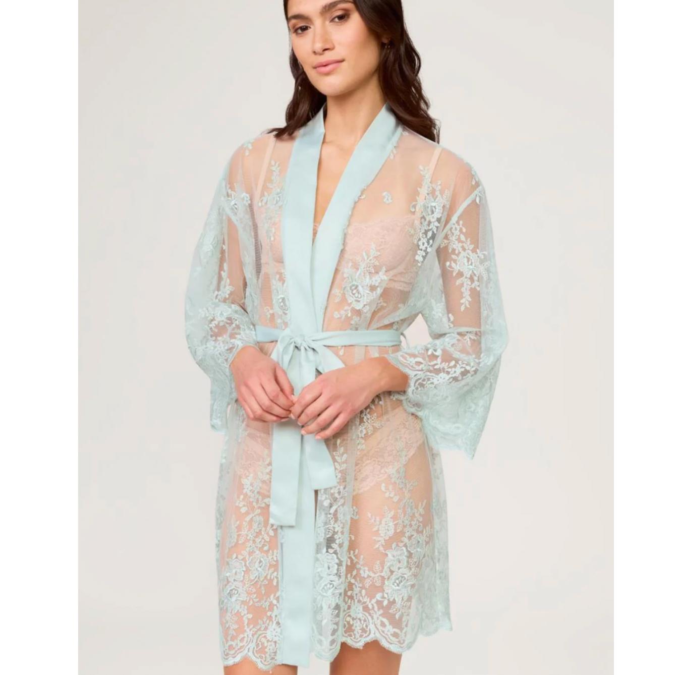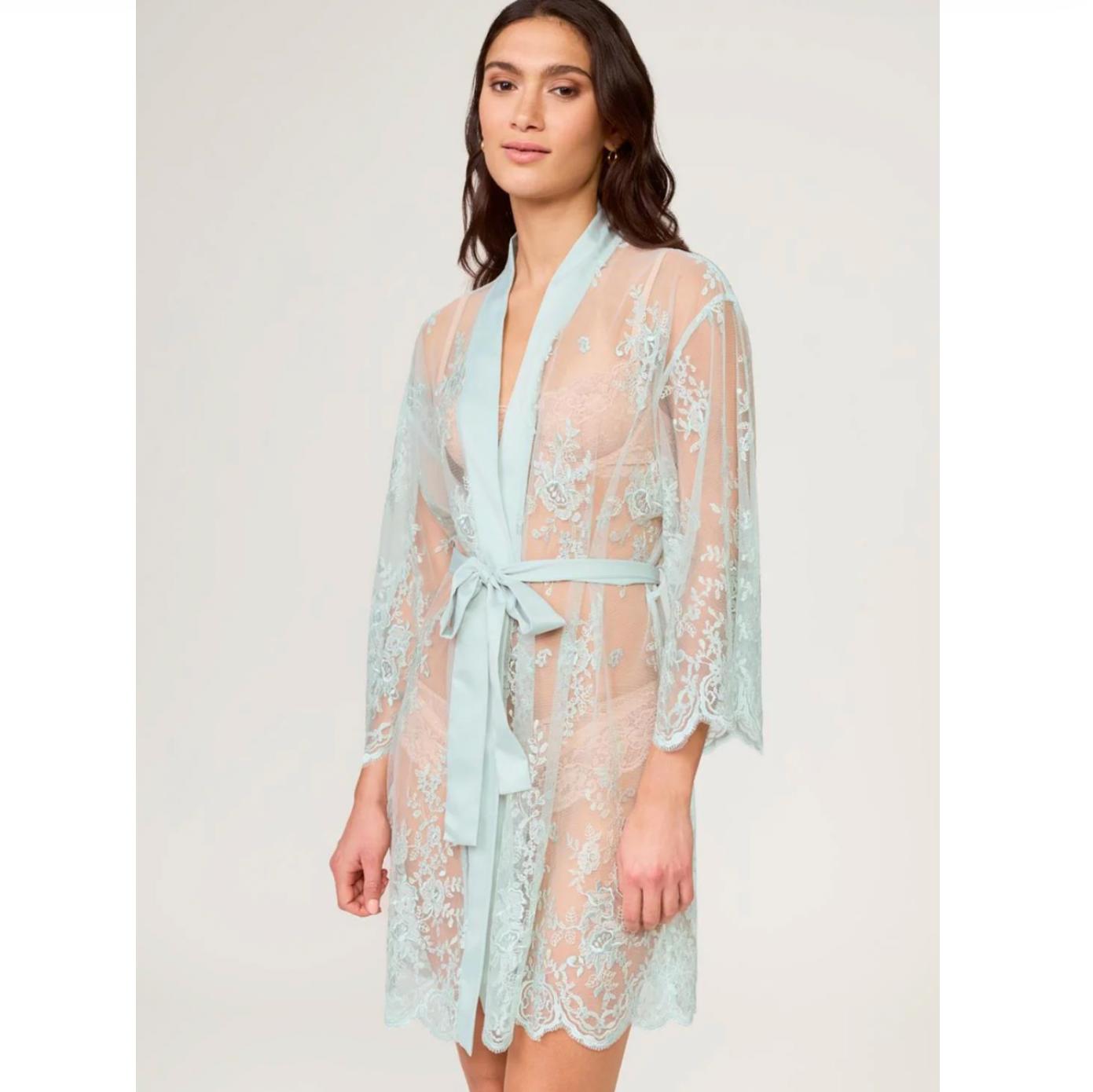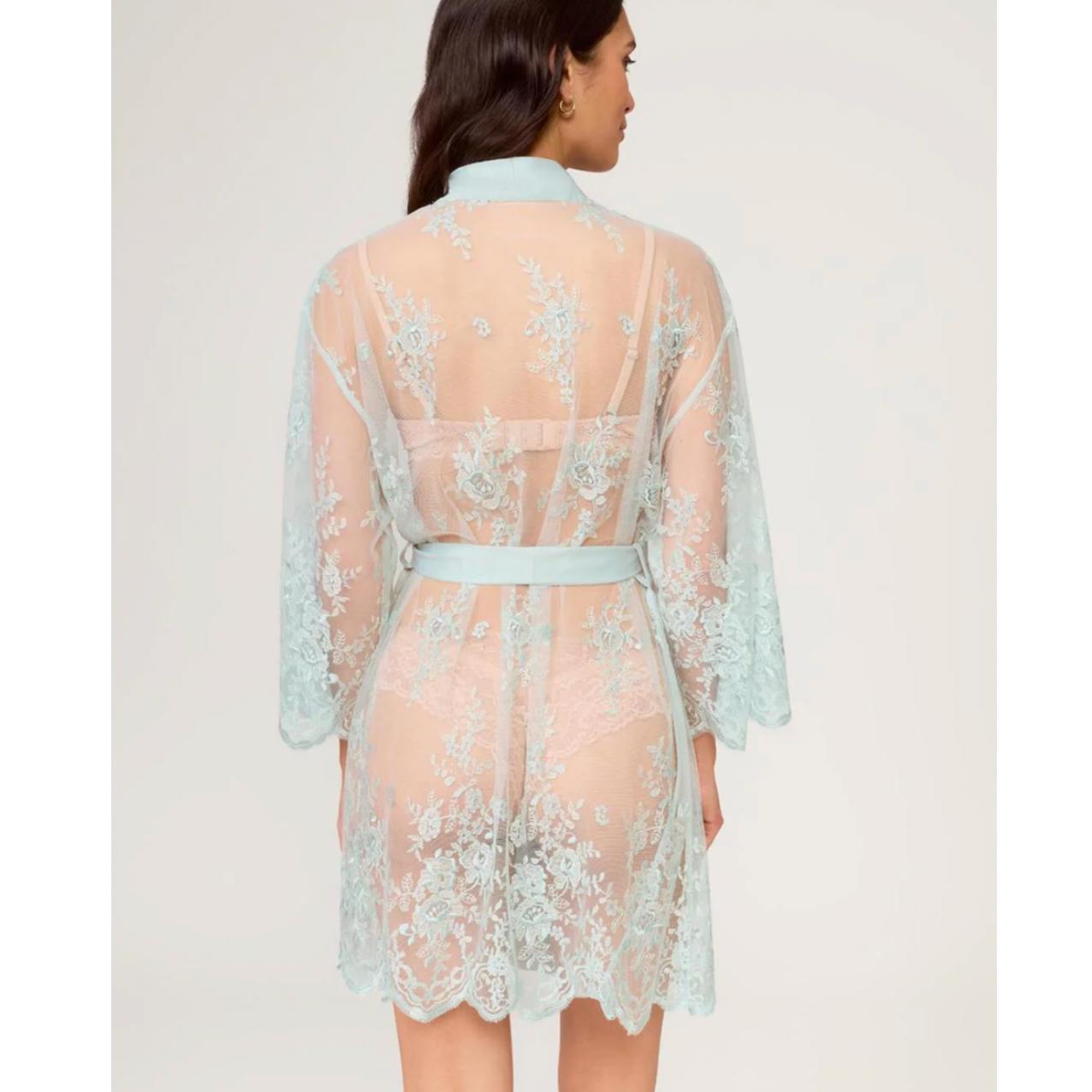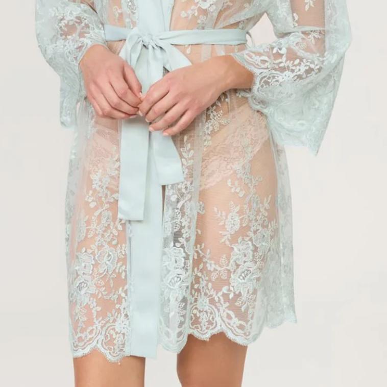 Slip into effortless elegance with this ethereal cover-up, where intricate embroidery meets versatile style. The delicate netting drapes beautifully over any intimate piece, while adjustable belt ties let you cinch and customize your silhouette. Crafted with care and ethical practices in mind, it's the perfect companion to the Darling Chemise or worn solo for understated allure. Hand wash cold and lay flat to dry to keep the embroidery pristine.