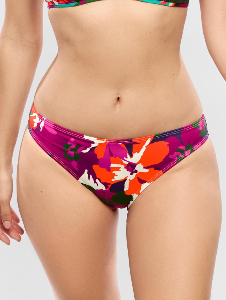Make waves in the Empreinte Nectar Brief, where bold florals meet pure comfort. This cheeky bikini bottom wraps you in soft, stretchy fabric that moves with you, while the eye-catching print and partial back coverage strike the perfect balance between playful and polished. Your resort days just got a whole lot more fun.