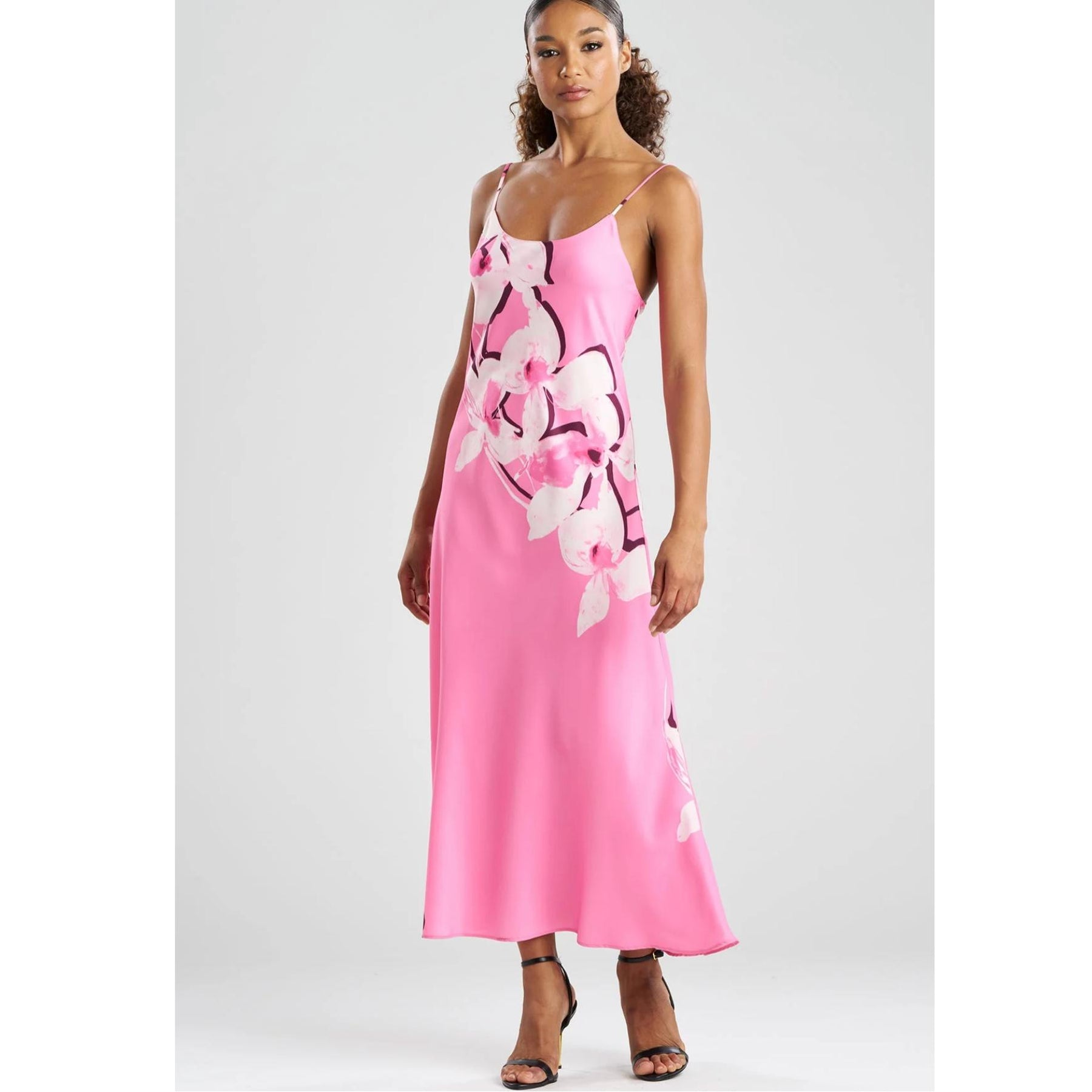 Natori's Orchida gown brings understated elegance to everyday comfort. Romantic orchid-inspired details grace soft satin polyester, while the scoop neckline and adjustable straps offer versatile styling. At 50 inches, this wrinkle-resistant design moves beautifully with you—practical luxury for those who refuse to compromise. Crafted at Natori's own Philippine facilities with meticulous attention to quality.