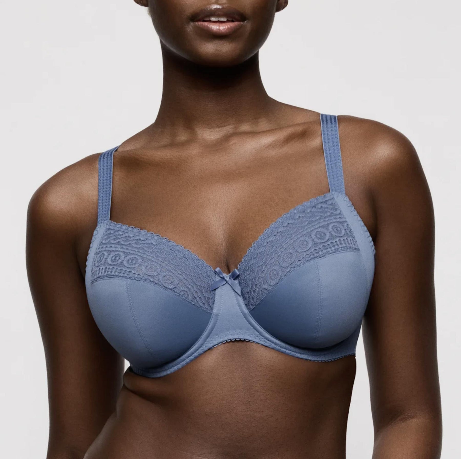 The Prima Donna Montara delivers timeless elegance with its full cup silhouette and refined retro aesthetic. Crafted with delicate lace and a non-padded underwire construction, it offers natural support without unnecessary bulk. The adjustable straps transition seamlessly between hidden and visible styling, while the sophisticated denim hue complements any wardrobe. Designed for those who appreciate understated luxury and all-day comfort.